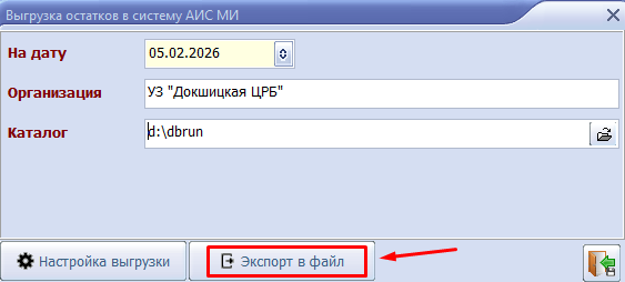 Заходим Сервис - Связь - Выгрузка остатков в систему АИС МИ: