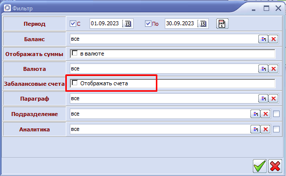 Если отметка не стоит и обороты не идут, тогда заходим Расчеты - Шахматка. В фильтре указываем такой же период, как и в главной книге.