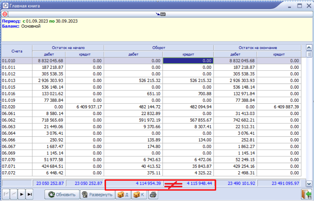 Обороты в главной книге не равны. Где искать разницу?