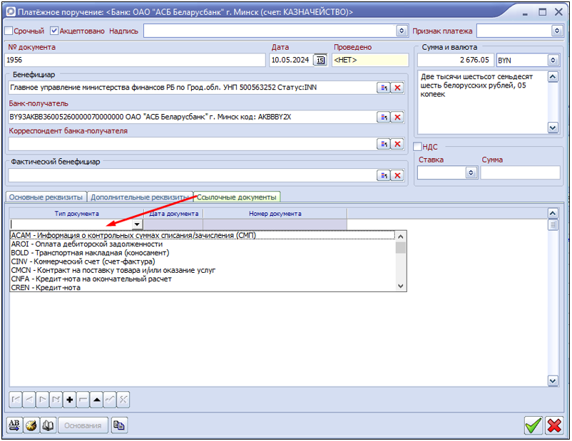 4. С 10.05.2024 добавлены поля Фактический плательщик (это текущая организация), Фактический бенефициар и вкладка Ссылочные документы (инструкцию по заполнению этих параметров уточнять в ТК).