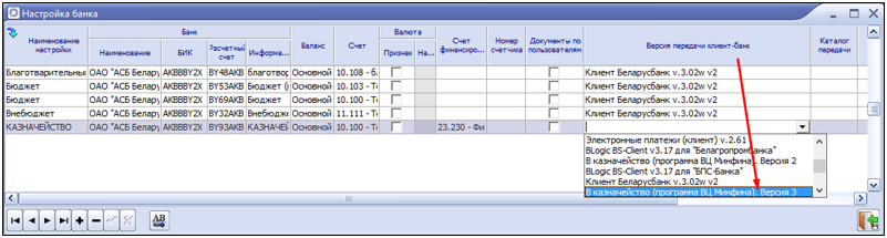 2. Версия передачи клиент-банк указываем В казначейство (программа ВЦ Минфина). Версия3 (заходим Справочники\Настройка банка).