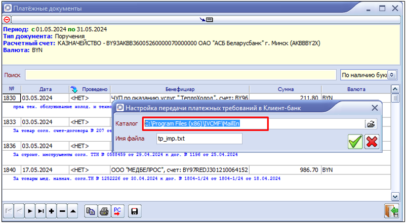 д) Указываем этот путь в каталоге Настройки передачи п/п в казначейство, версия 3.