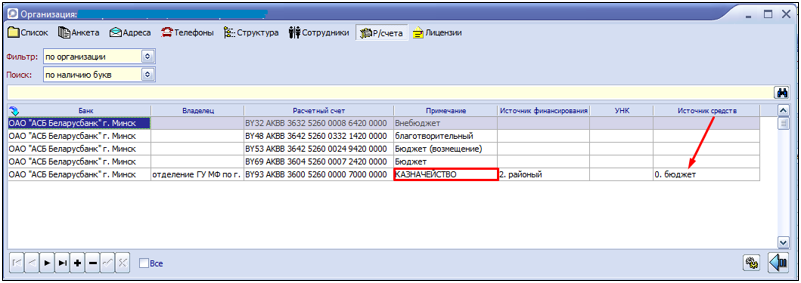 1. Обязательное заполнение поля "Источник средств" для расчетного счета (заходим Справочники\Организации\Организации, далее кнопка Расчетные счета и напротив казначейского расчетного счета заполняем последнюю колонку Источник).