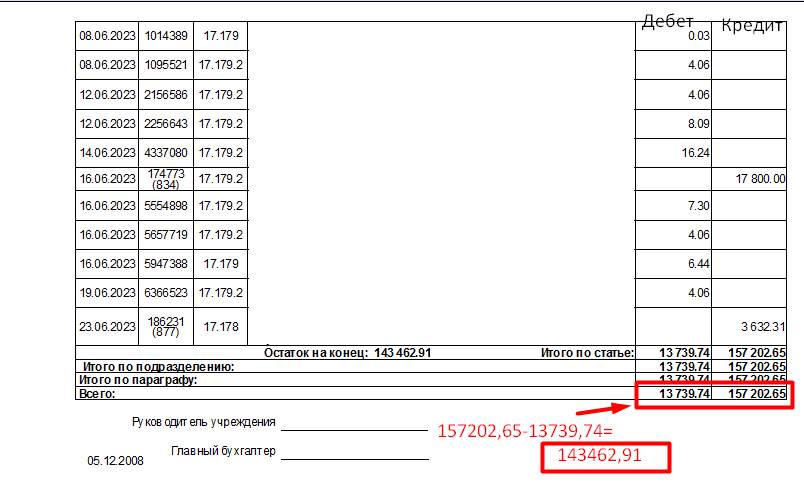 Если обороты есть и по дебету, и по кредиту, тогда сумма кассовых будет равна разнице между кредитовой суммой и дебетовой (157202,65-13739,74=143462,91).