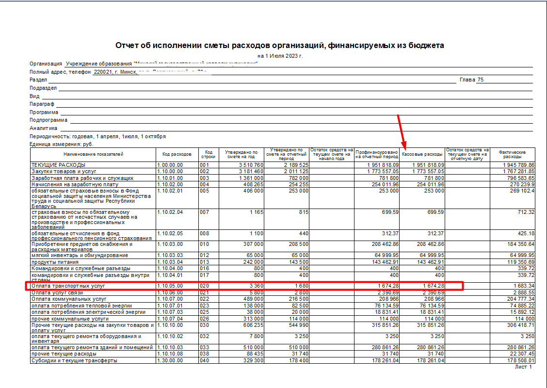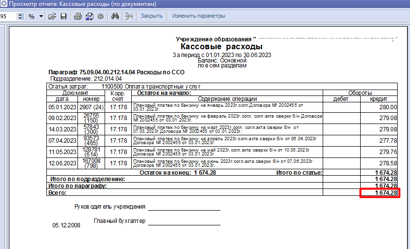 По статье 1100500 сумма кассовых расходов составляет 1674,28. Как проверить из каких сумм она состоит?