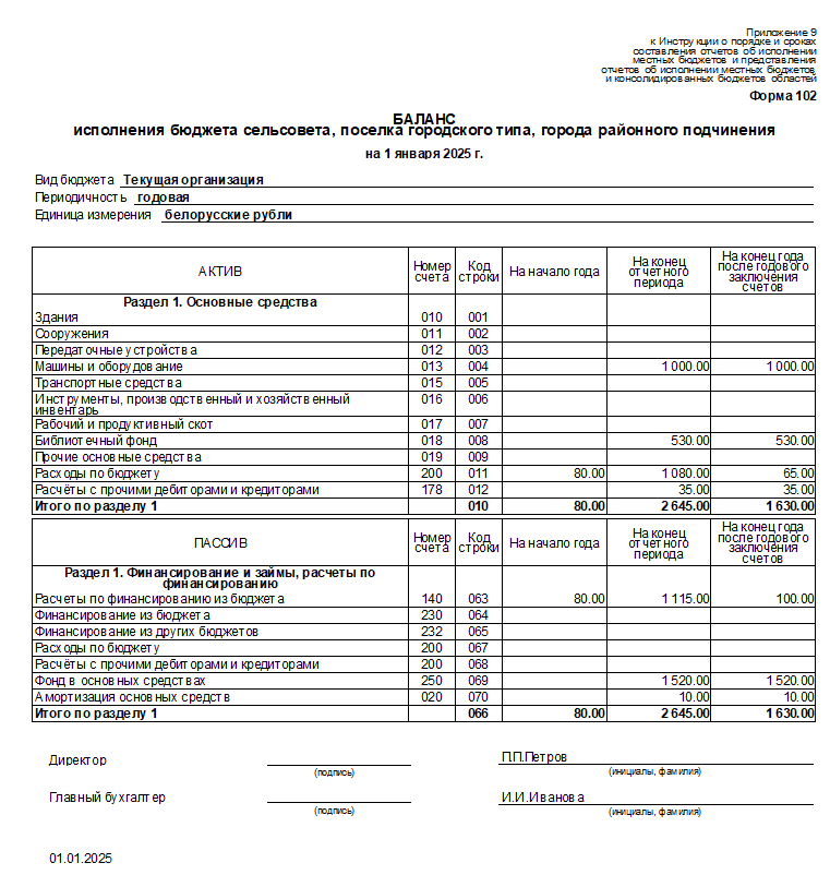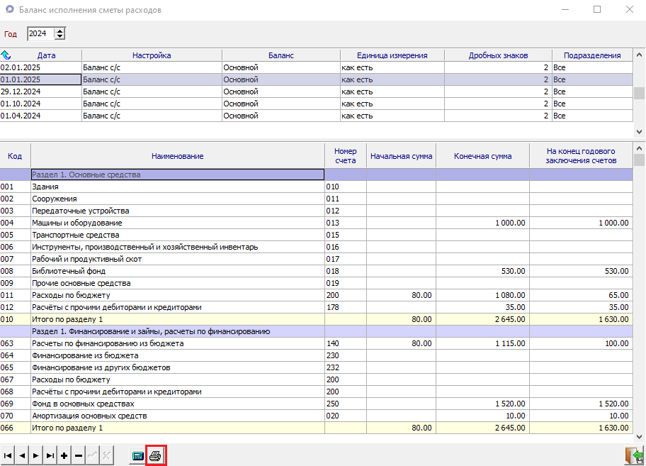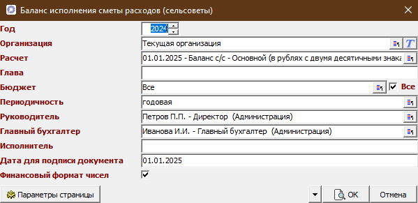 В задаче "Главная книга" добавлен новый отчет для сельсоветов "Баланс исполнения сметы расходов".