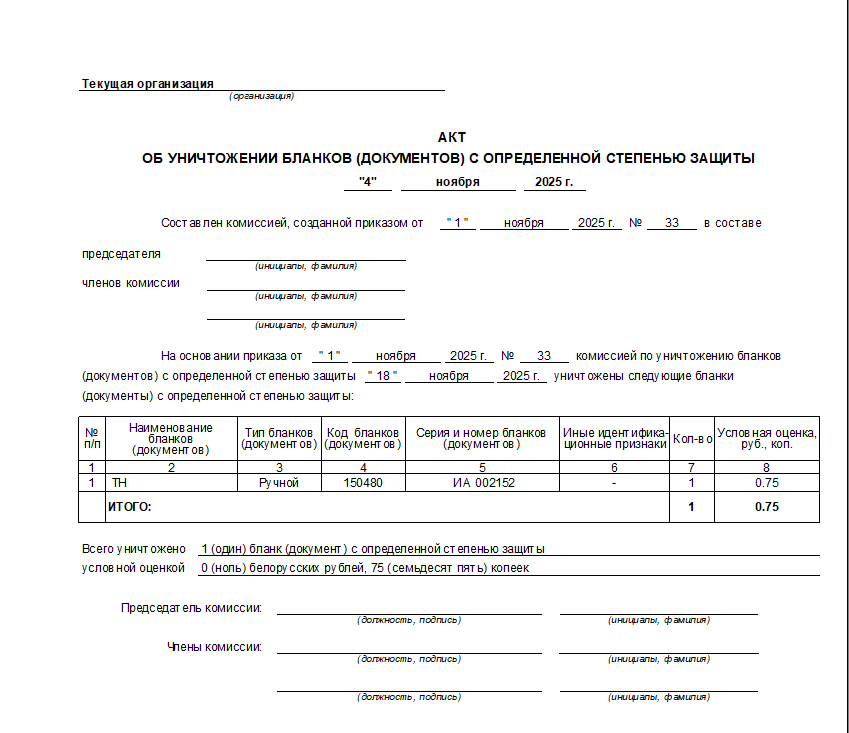 В задаче "Бланки строгой отчетности" был добавлен новый отчет "Акт об уничтожении бланков (документов) с определенной степенью защиты".