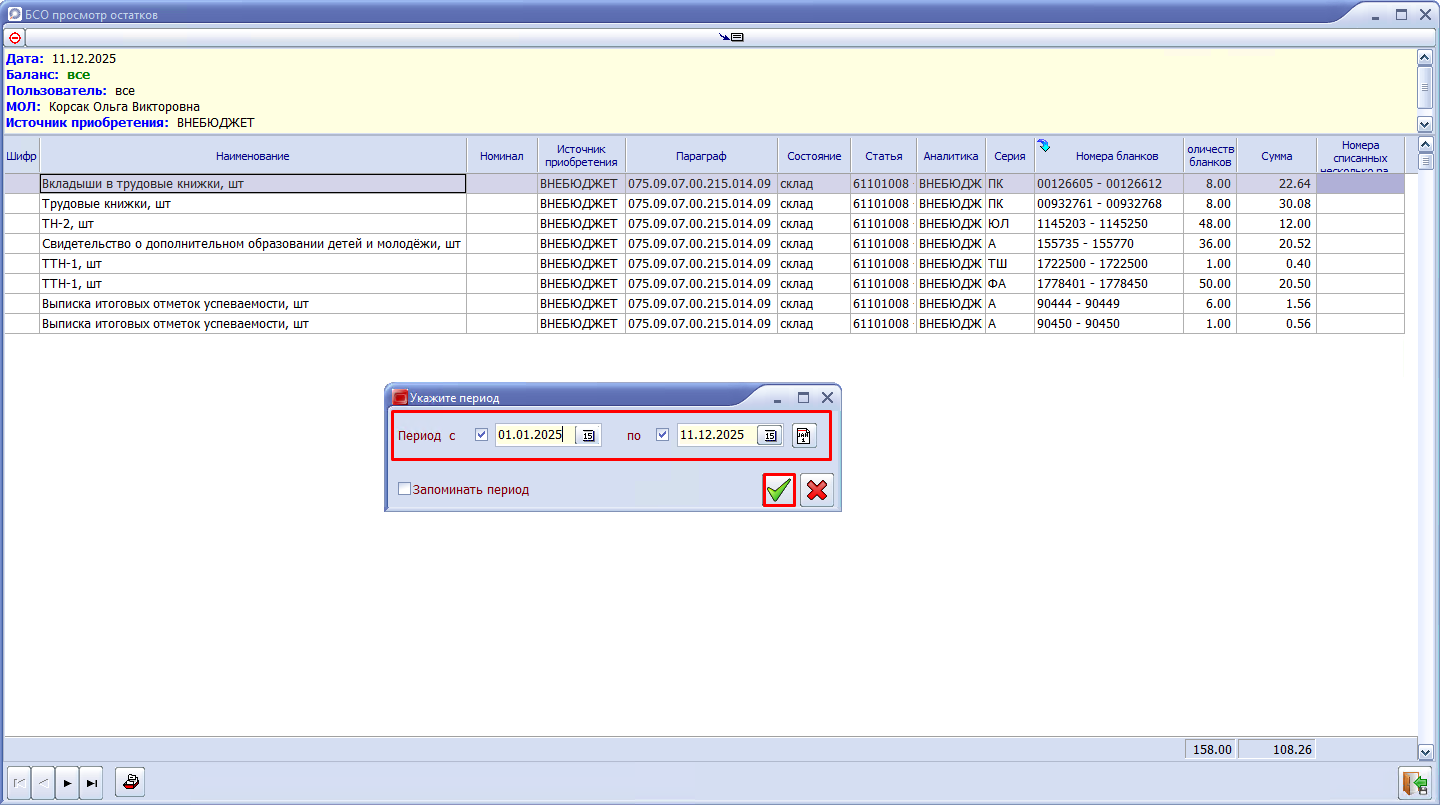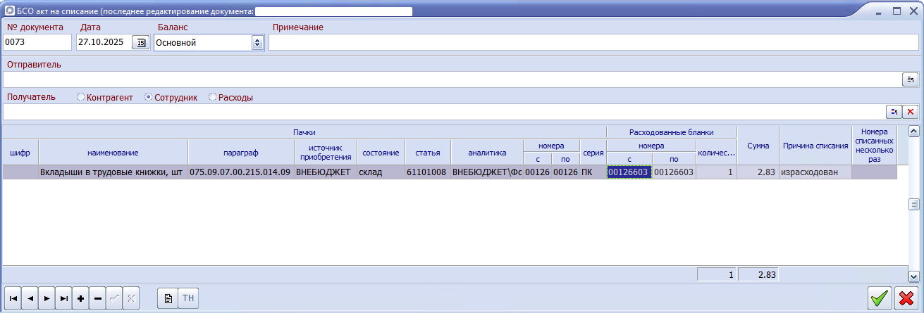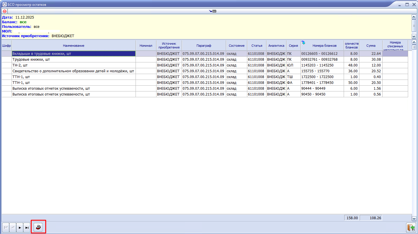 Для просмотра сведений о движении по выбранному бланку нужно нажать на кнопку Карточка бланка: