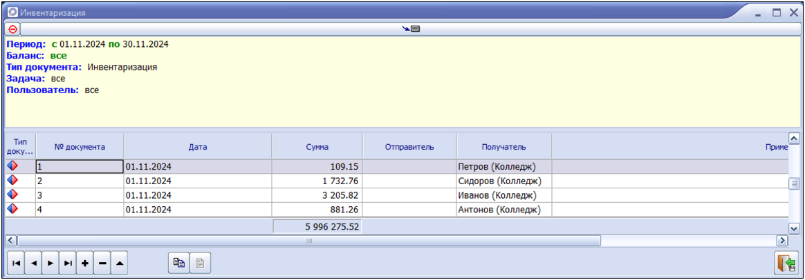 Получаем на экране документы по инвентаризации на каждого МОЛа.