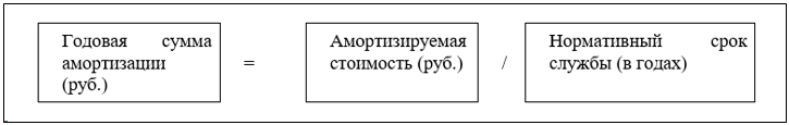 2) путем деления амортизируемой стоимости на установленный нормативный срок службы в годах по формуле: