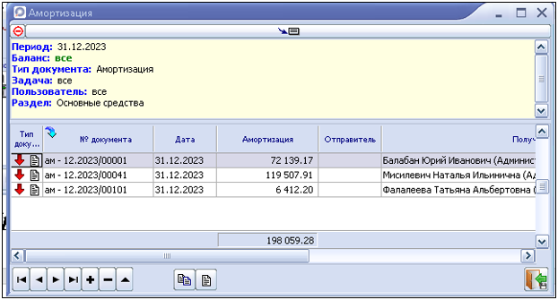 Если одна из этих сумм не сходится, то необходимо проверить наличие проводок (Дт и Кт) в сформированных документах на 31.12.2023 («Ввод – Амортизация») и доставить/настроить счет, которого не хватает.