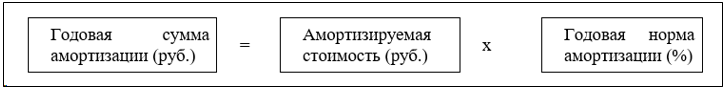 Годовая сумма амортизации основных средств и нематериальных активов определяется исходя из амортизируемой стоимости объекта основных средств и нормы амортизации, исчисленной исходя из нормативного срока службы.