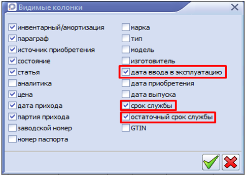 Проверить наличие этой информации можно через форму «Просмотр остатков» (Расчеты – Просмотр остатков), установив по кнопке «Выбор видимых колонок» параметры как указано на рисунке: