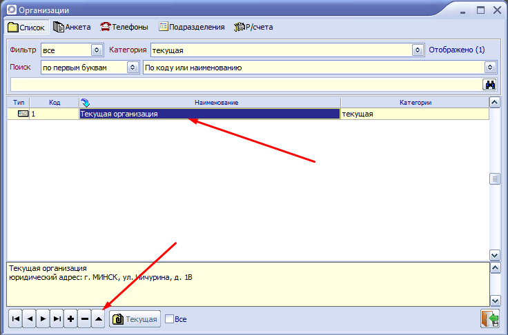 2. В списке организаций "становимся" на организацию, по которой необходимо изменить "Код МНС". Например, по текущей организации.