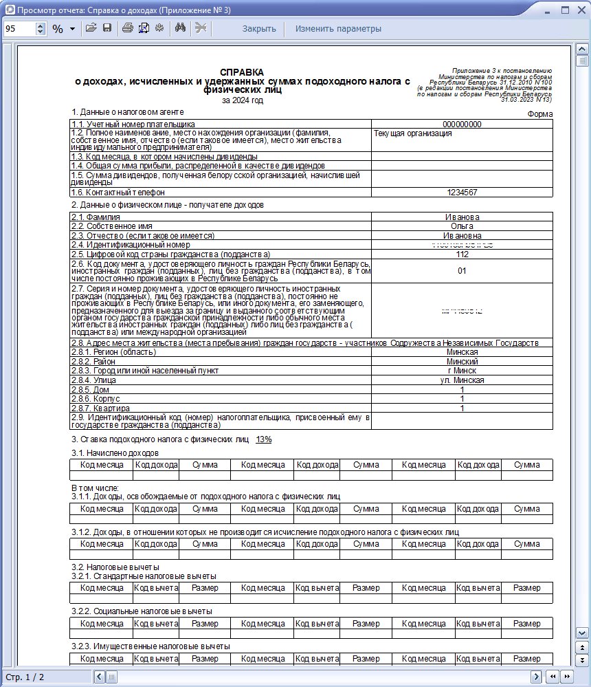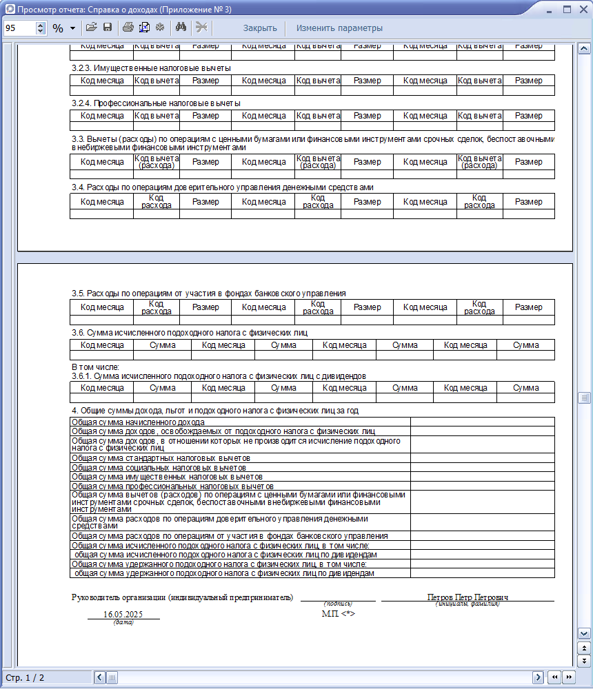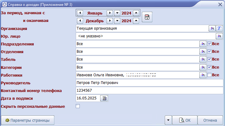 · Скрыть персональные данные: при установке отметки не будет выводиться данные в строках 2.7, 2.8.1 - 2.8.7.