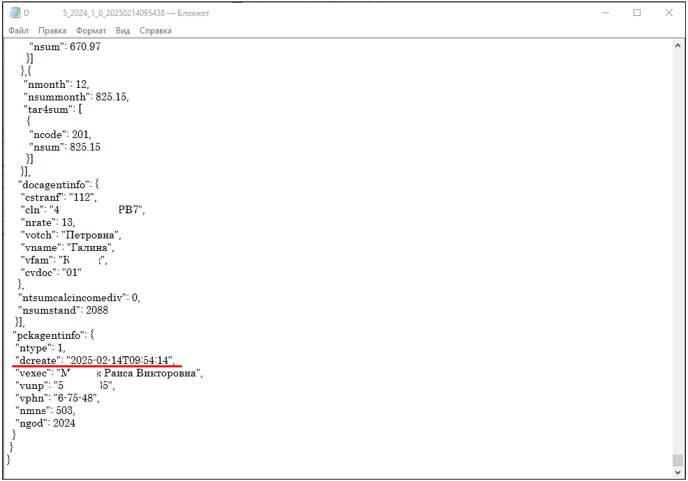 Открываем json-файл в блокноте. Нажимаем F3 или комбинацию клавиш Ctrl+F, и ищем "dcreate" либо спускаемся в самый низ файла, находим строку с "dcreate" - дата создания. Меняем минуты или секунды создания файла.