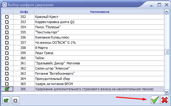 7. Шифр должен отобразиться в колонке "Шифры удержаний".