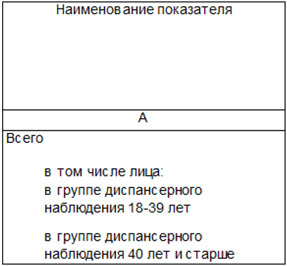 - заменены строки «в трудоспособном возрасте» и «мужчины» на «в группе диспансерного наблюдения 18-39 лет» и «в группе диспансерного наблюдения 40 лет и старше»: