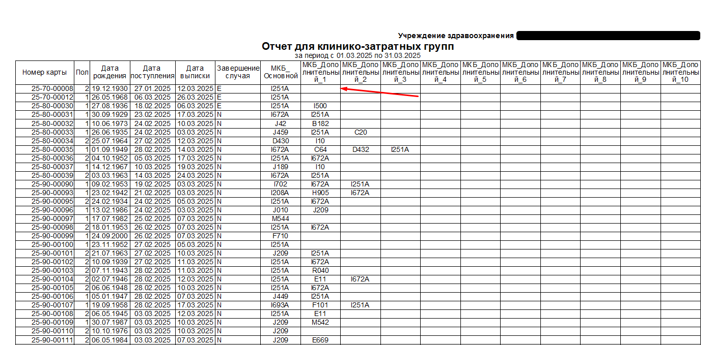 Доработано отображение диагноза для умерших пациентов. Если в медицинской карте пациента "Исход" указан "2. Умер", то в колонки "МКБ_основной" и "МКБ_дополнительный" данные по диагнозам будут попадать из патологоанатомического диагноза.