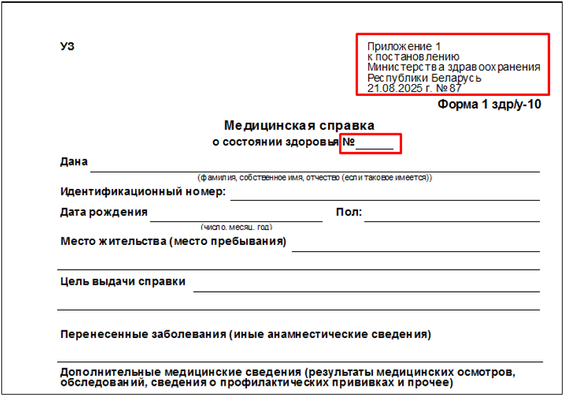 Доработан отчет «Медицинская справка о состоянии здоровья» в соответствии с Постановлением №87 от 21.08.2025.