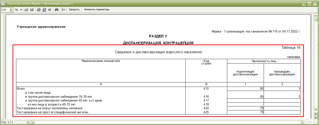 Переработана таблица 16. Добавлены показатели «424 Тестирование на вирус папилломы человека» и «425 Тестирование на простатспецифический антиген», исключены графы 3-10.