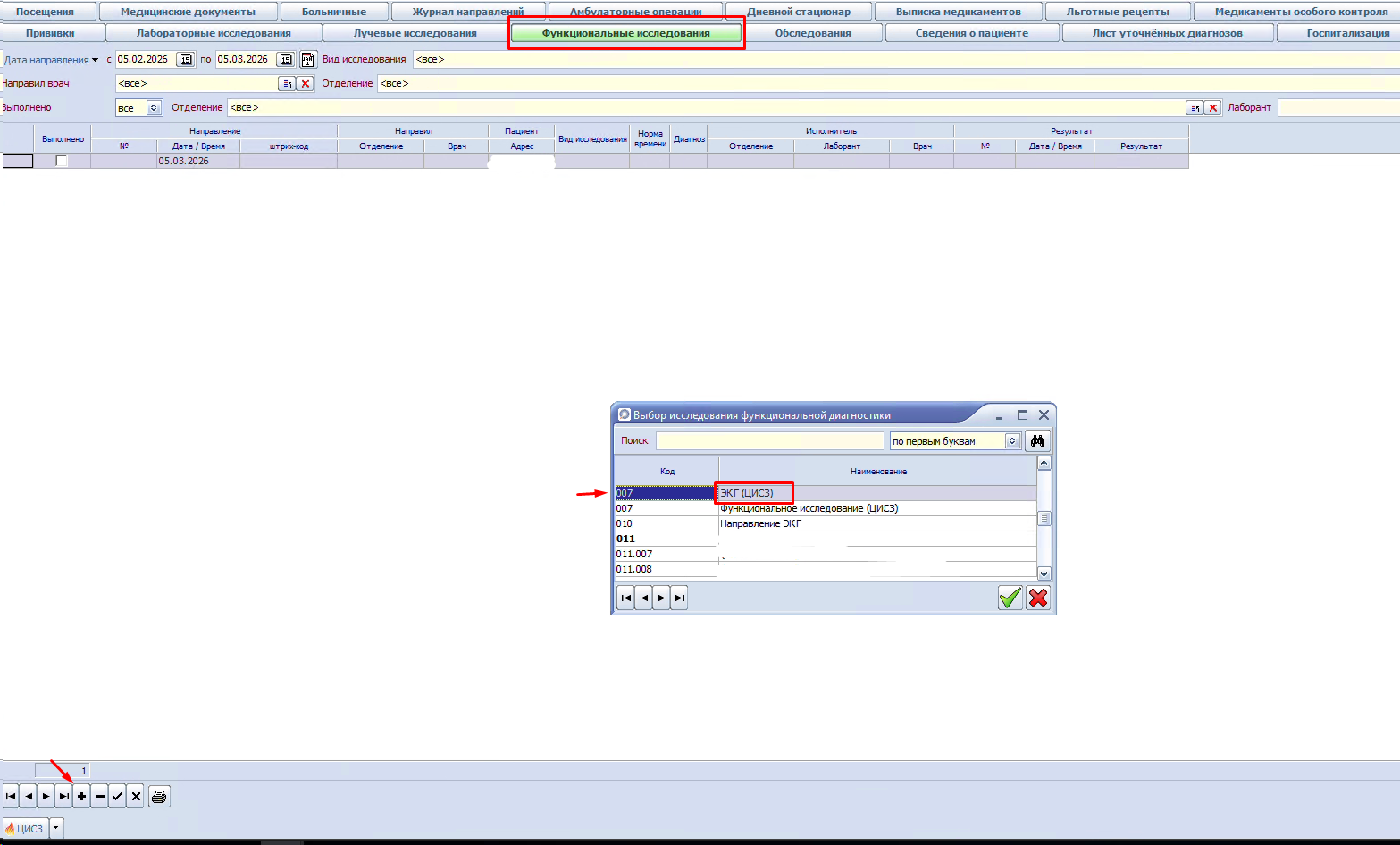 Начиная с версии 10.00.36 пункты 1-3 можно выполнить в форме "Журнал функциональных исследований" в задаче "Функциональная диагностика"