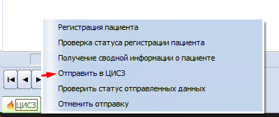 3.1. Нажимаем кнопку "ЦИСЗ", из списка выбираем "Отправить в ЦИСЗ".