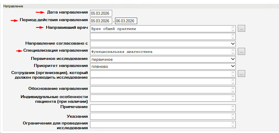 - Цель направления (заполняется руками)