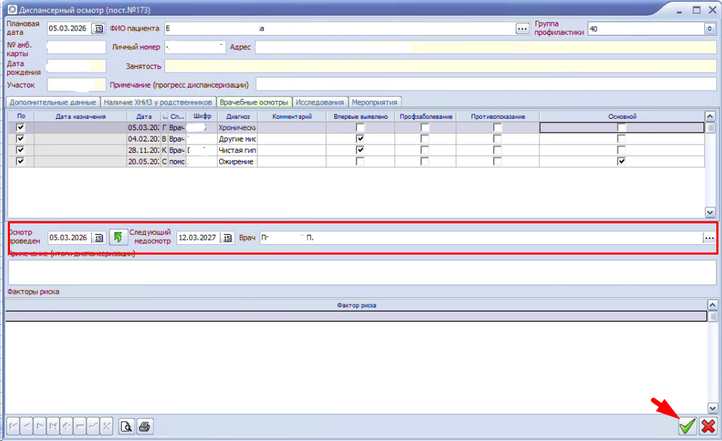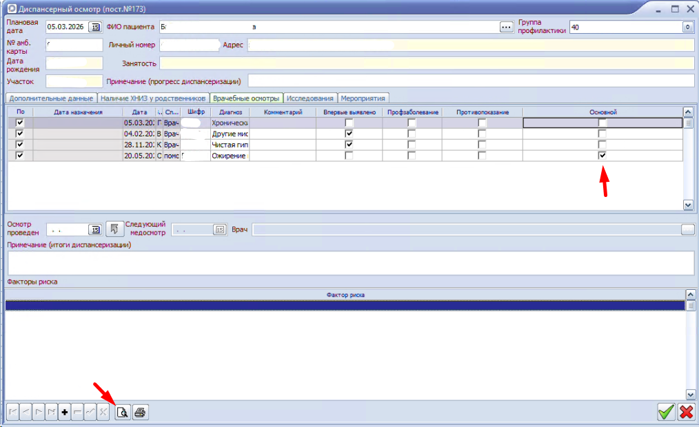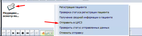 Далее переходим в посещения пациента и отправляем дневник "медицинский осмотр по диспансеризации" в ЦИСЗ.