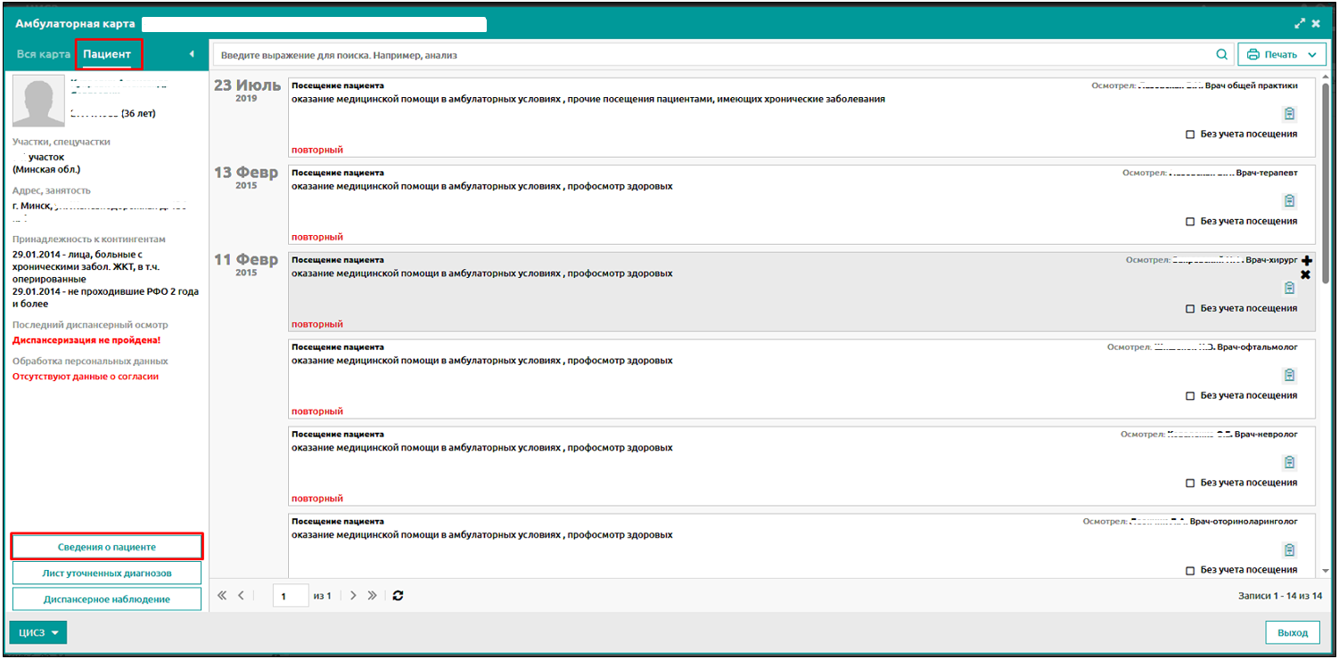 2. Информация о пациенте в амбулаторной карте пациента пациента.