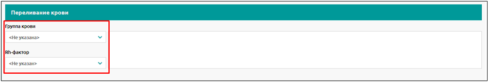 Для пациента указывается информация о группе крови и резус-факторе.