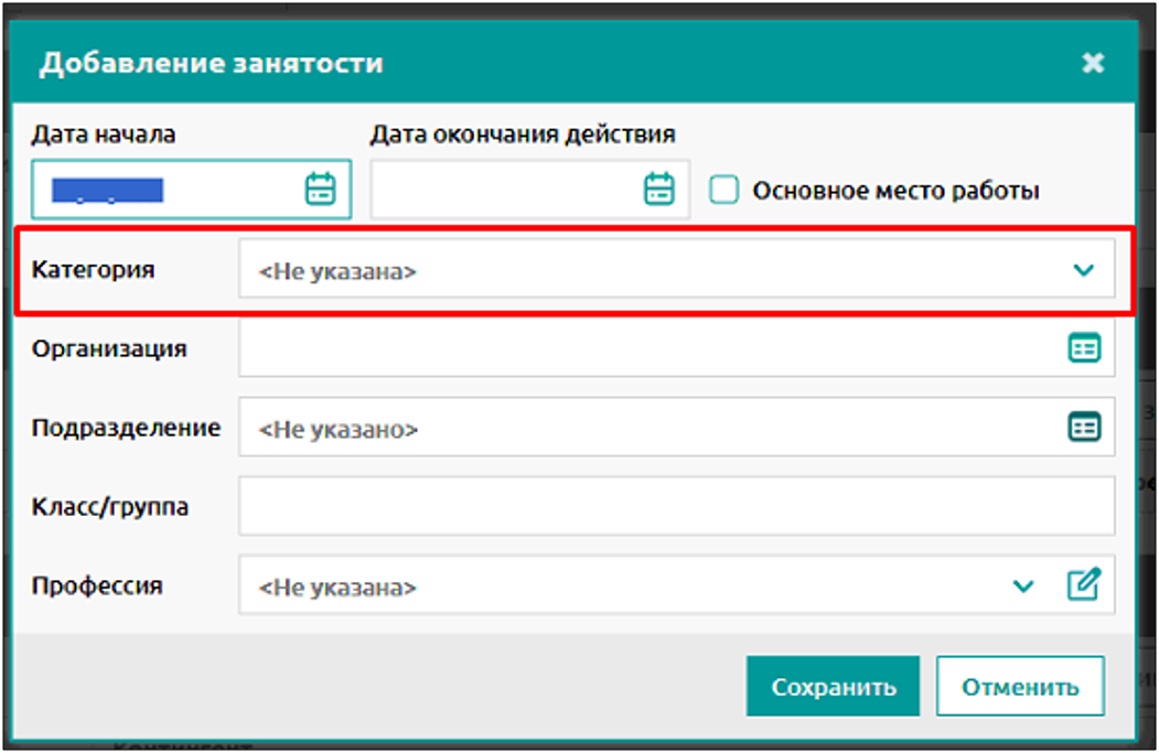 При добавлении занятости для пациента можно выбрать нужную категорию организации.