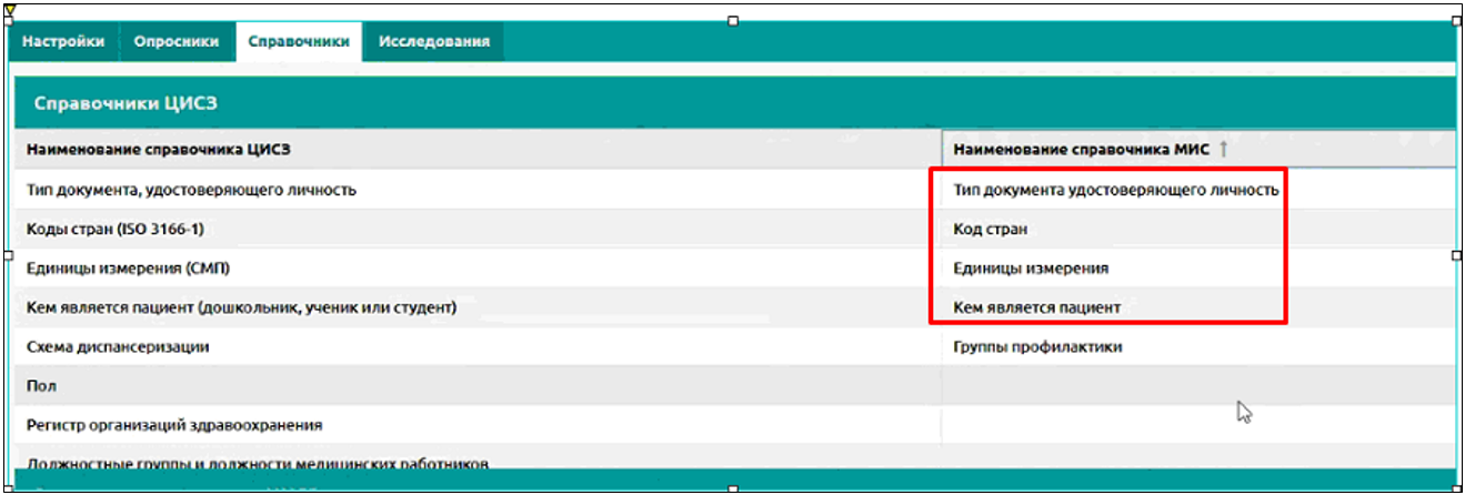 2.5. Заполнение справочника связи значений ЦИСЗ и МИС.