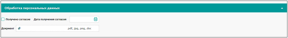 Должна быть указана информация о наличии и дате получения согласия на обработку персональных данных.