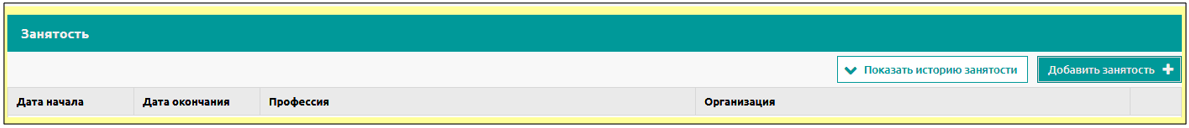В занятости указываются места работы и места обучения пациента.