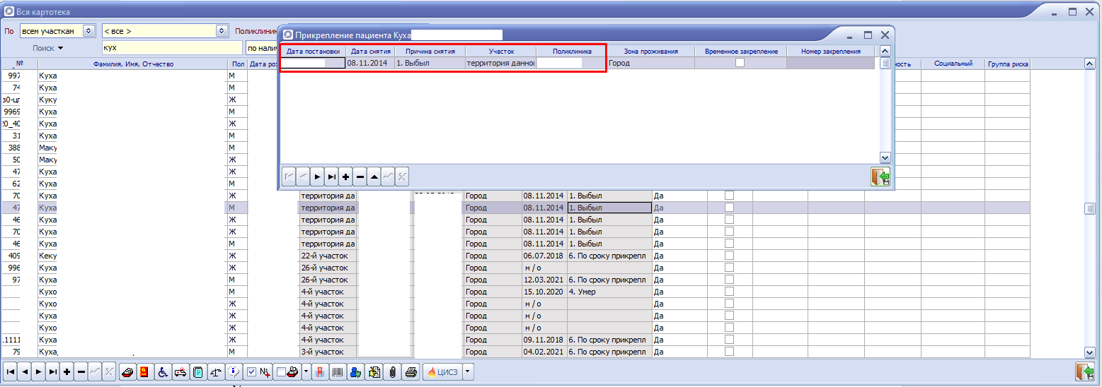 Заполняется информация о прикреплении пациента к поликлинике.