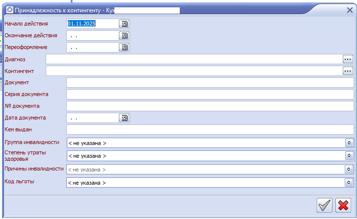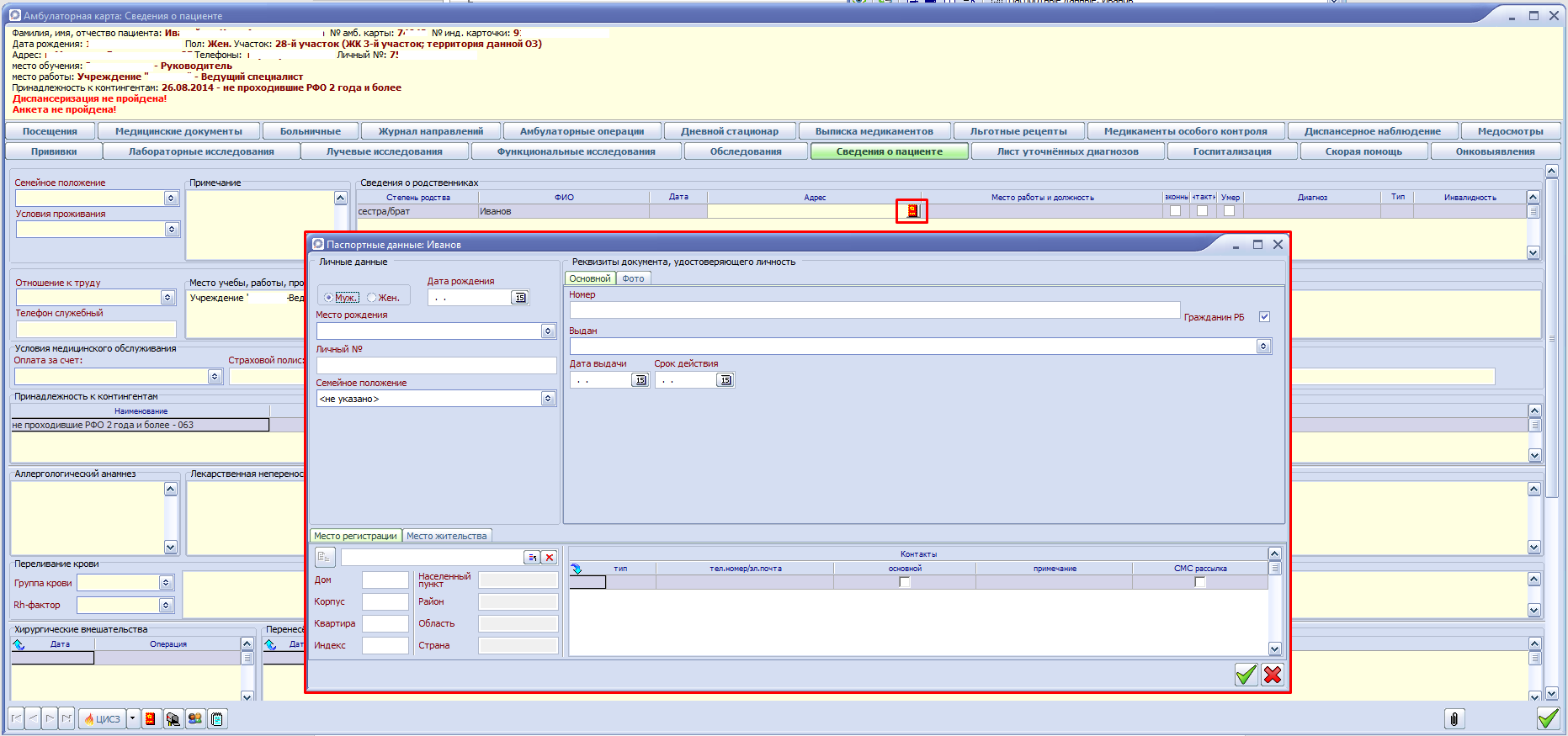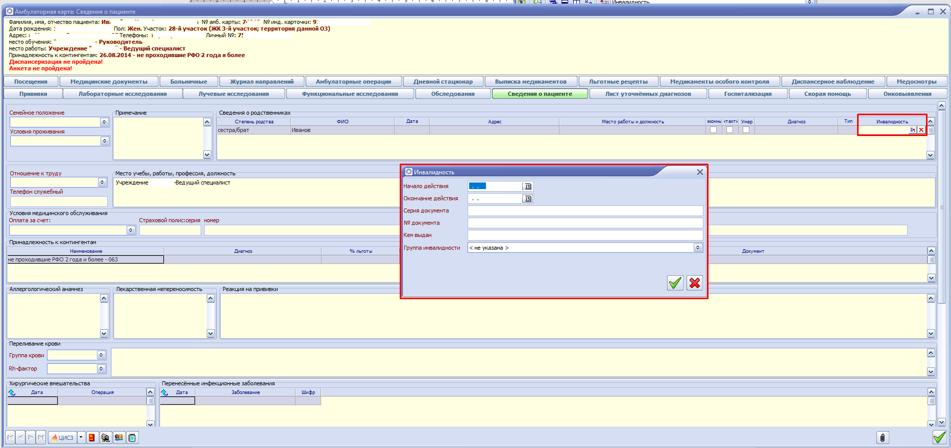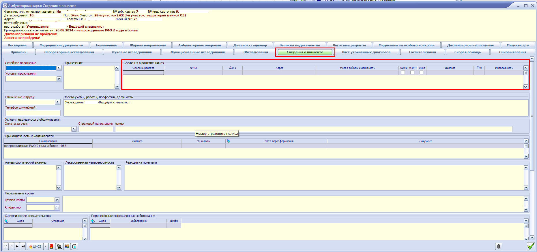 Информация заполняется в сведениях о пациенте амбулаторной карты.