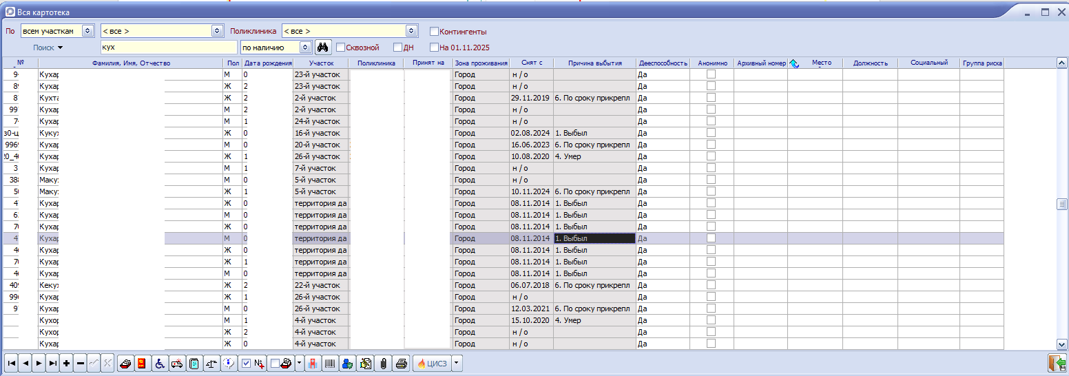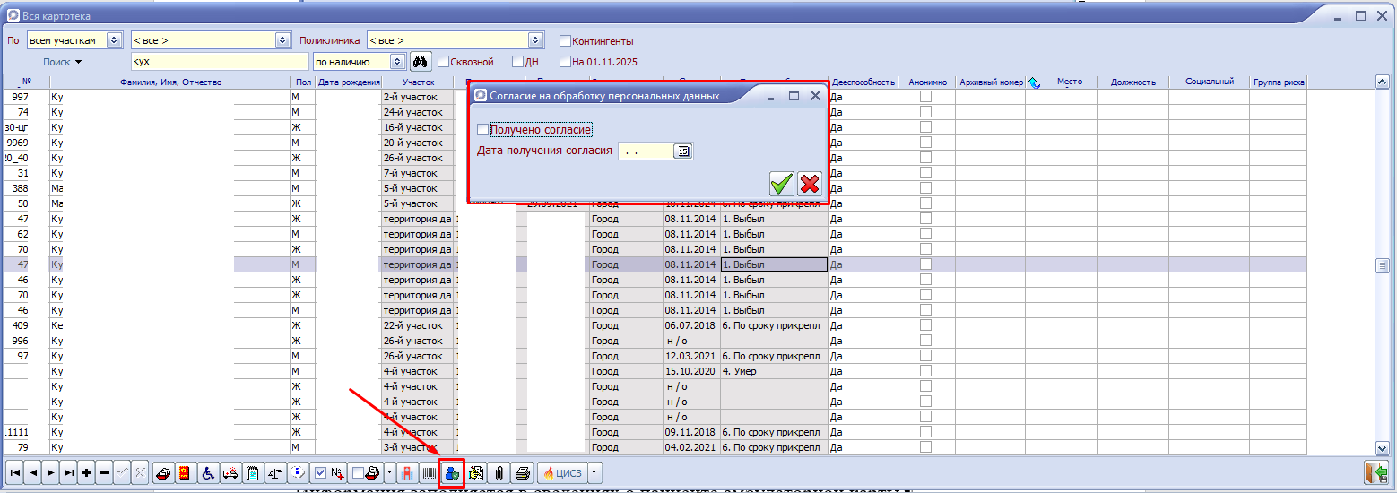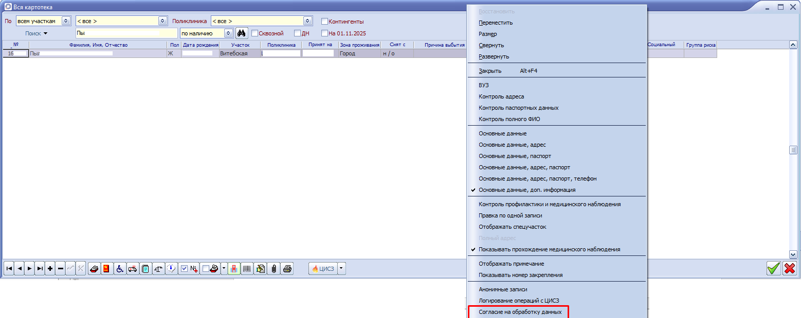 1. Информация о пациенте в карточке пациента (картотека пациентов).