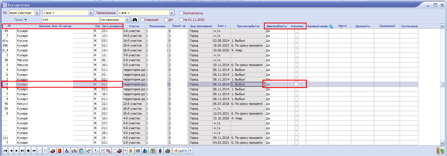 Дееспособность устанавливается по умолчанию «да». Статус «нет» указывается для недееспособных пациентов.