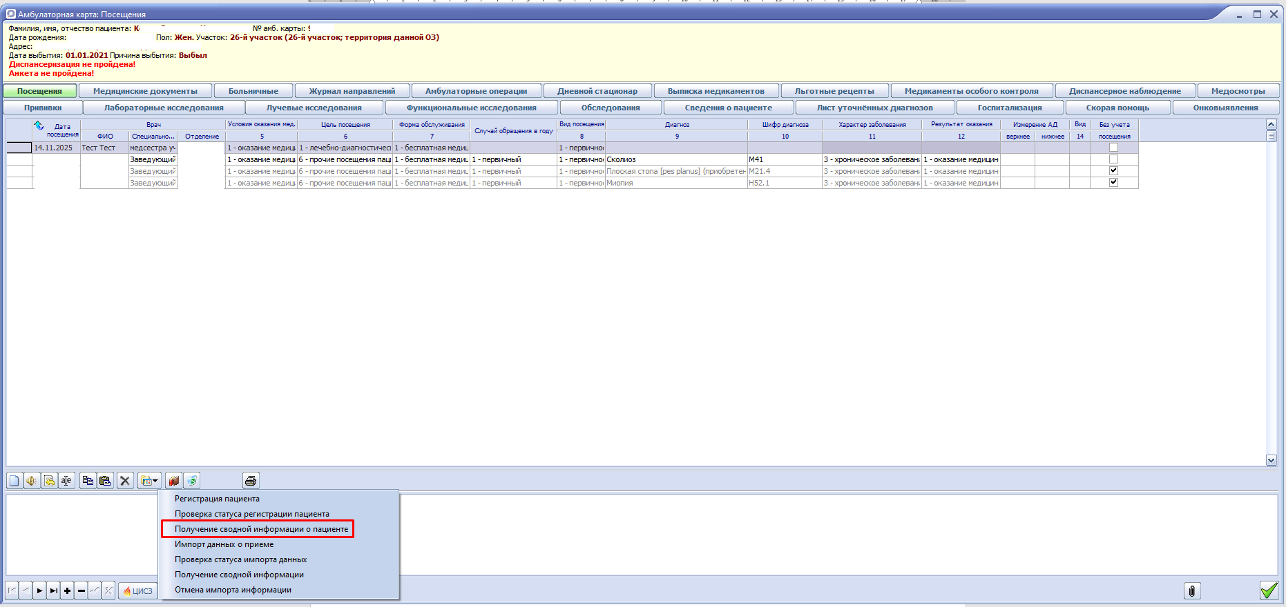 При работе с амбулаторной картой пациента можно просмотреть информацию о пациенте, хранимую в ЦИСЗ.