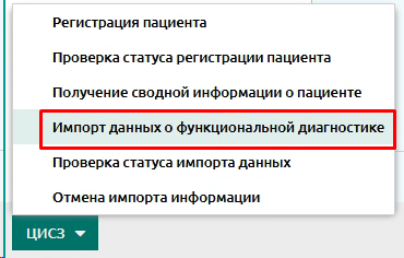 3.1 Нажать кнопку "ЦИСЗ" из списка выбрать "Импорт данных о функциональной диагностике".