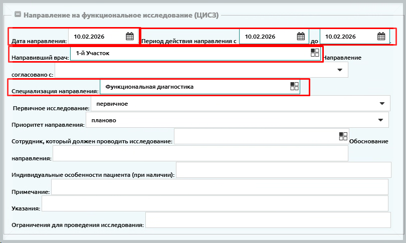 2.2 В блоке "Направление на функциональное исследование (ЦИСЗ)":