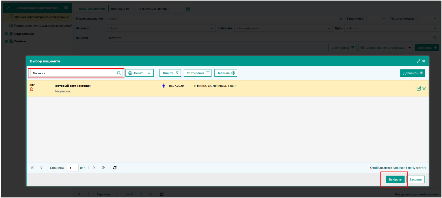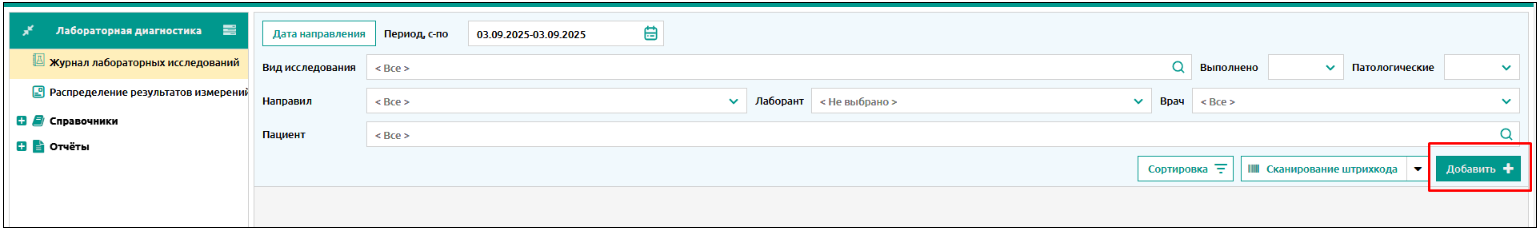 Для создания электронного направления через журнал лабораторных исследований нужно: