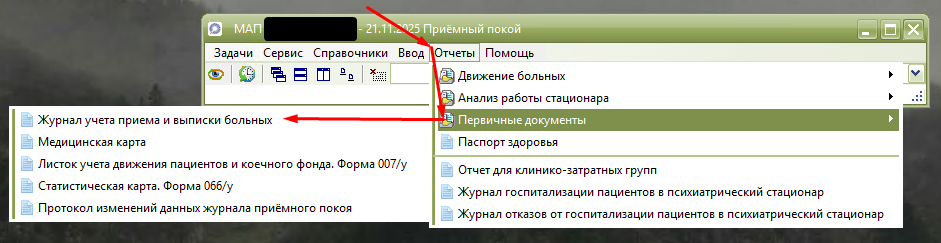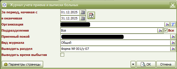 2. Выбираем отчет "Журнал учета приема и выписки больных".