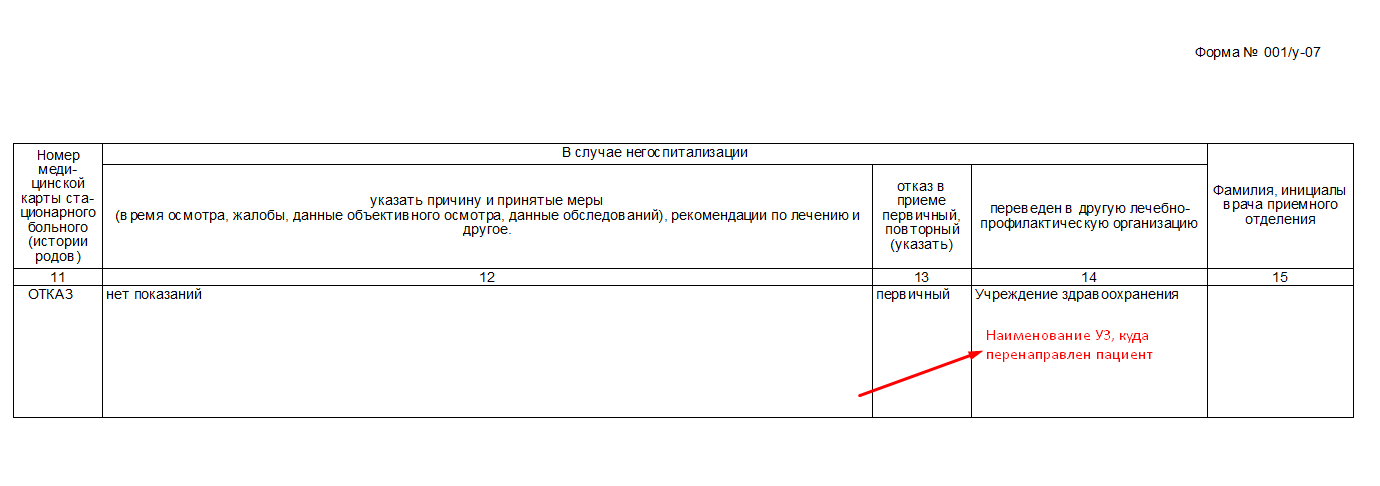 Строка "Перенаправлен" становится доступной только при проставлении галки "Отказ в госпитализации".