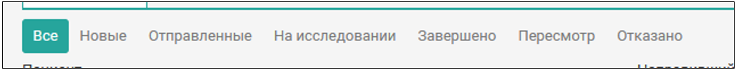 Обратите внимание на вкладки в верхней части окна. Возможно отображение исследований по их статусу: