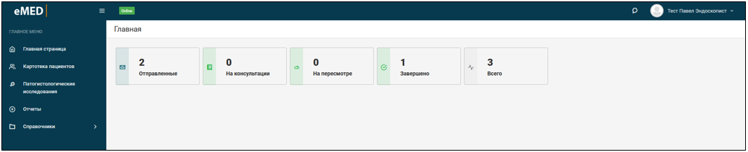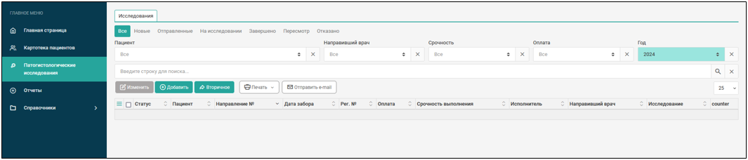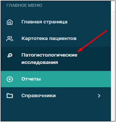 Для создания нового исследования или просмотра уже выполненного исследования необходимо перейти на вкладку «Патогистологические исследования».