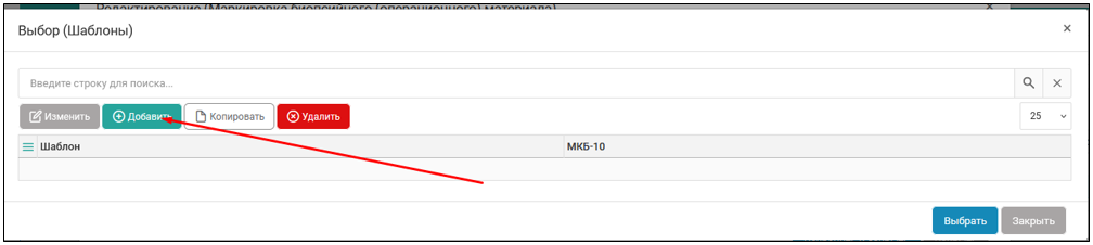 Открывается форма с вводом шаблонов. Нажимаем «Добавить».