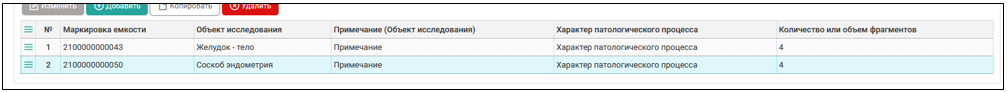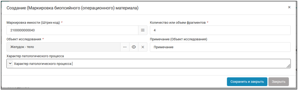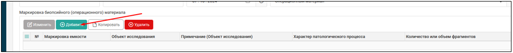 7. Маркировка биопсионного (операционного) материала – для добавления материала нужно нажать «Добавить».
