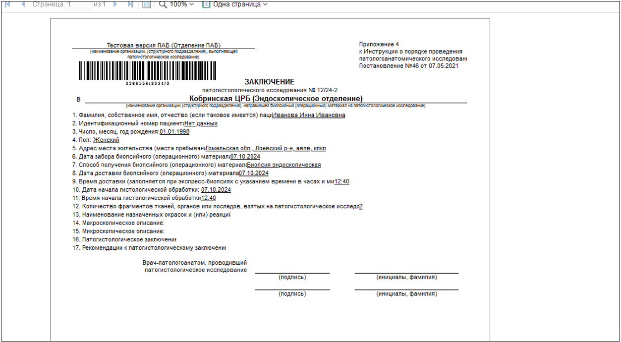 7. Отказано – исследования по какой-то причине не выполненные в ПАБ.